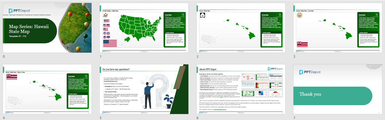 This collection of PPT templates captures the U.S. state of Hawaii, along with its major cities and counties.