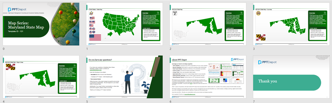 This collection of PPT templates captures the U.S. state of Maryland, along with its major cities and counties.