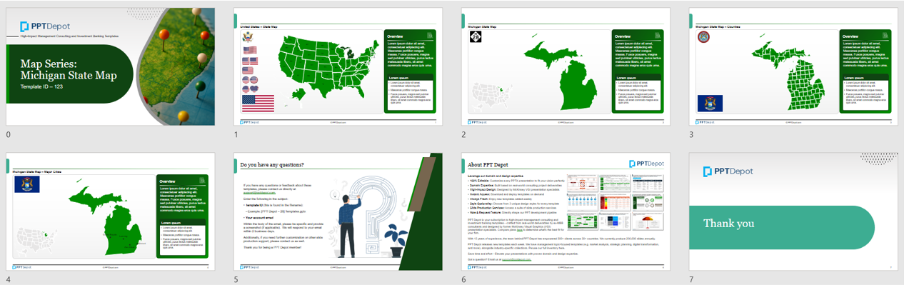 This collection of PPT templates captures the U.S. state of Michigan, along with its major cities and counties.