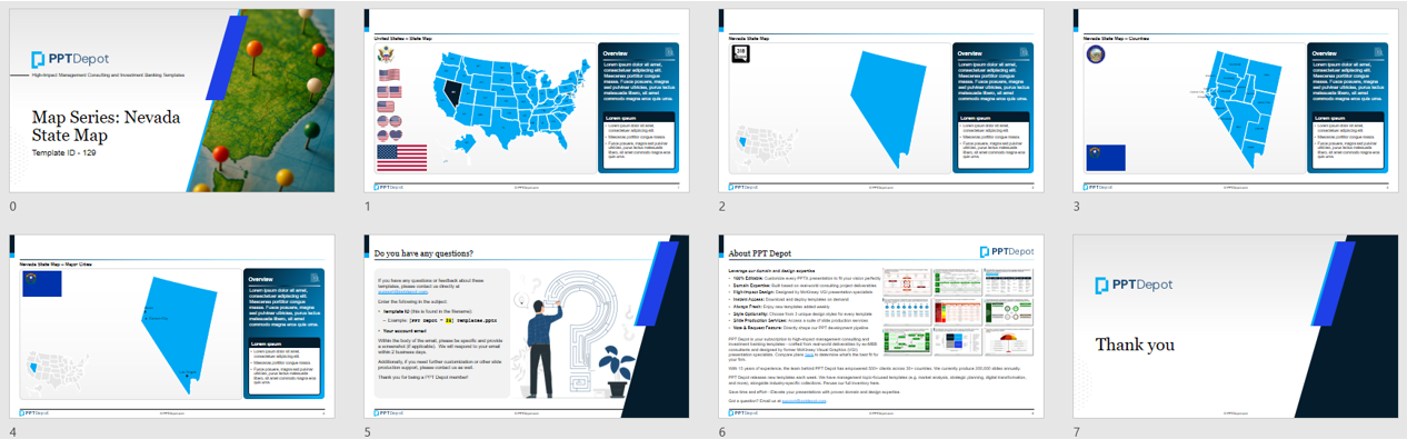 This collection of PPT templates captures the U.S. state of Nevada, along with its major cities and counties.