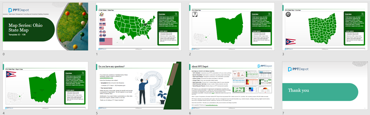 This collection of PPT templates captures the U.S. state of Ohio, along with its major cities and counties.