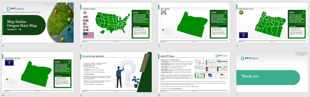 This collection of PPT templates captures the U.S. state of Oregon, along with its major cities and counties.