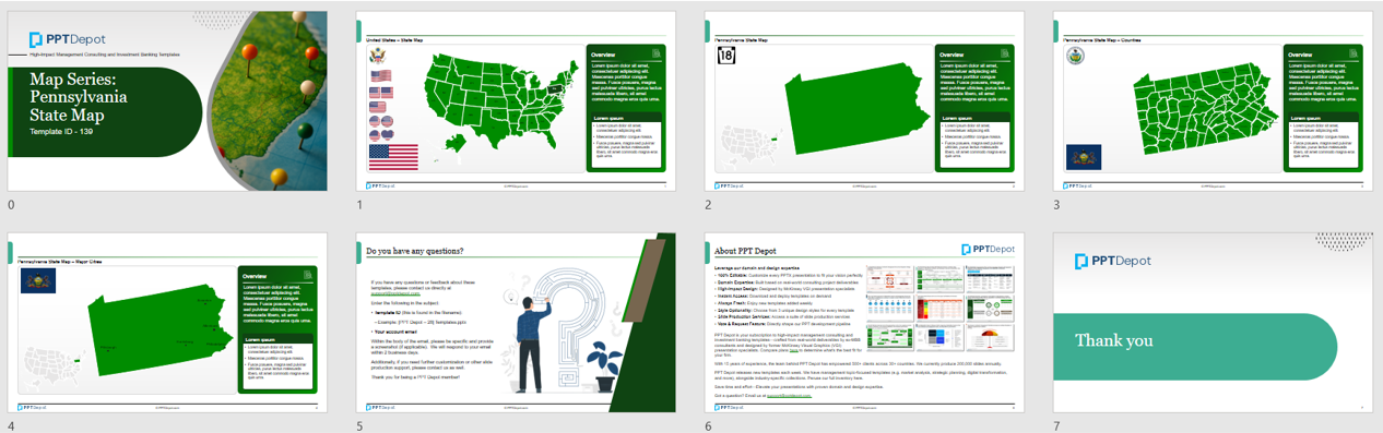 This collection of PPT templates captures the U.S. state of Pennsylvania, along with its major cities and counties.