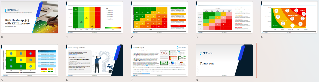 Download our 5-slide Risk Heatmap with KPI Exposure PowerPoint template pack: A set of 5×5 risk heatmap PPT layouts that prioritize risks and connect them to KPI exposure.